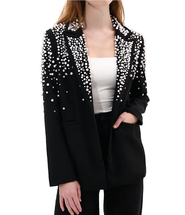 John Mark Woven Embroidered Abstract Oversized Blazer