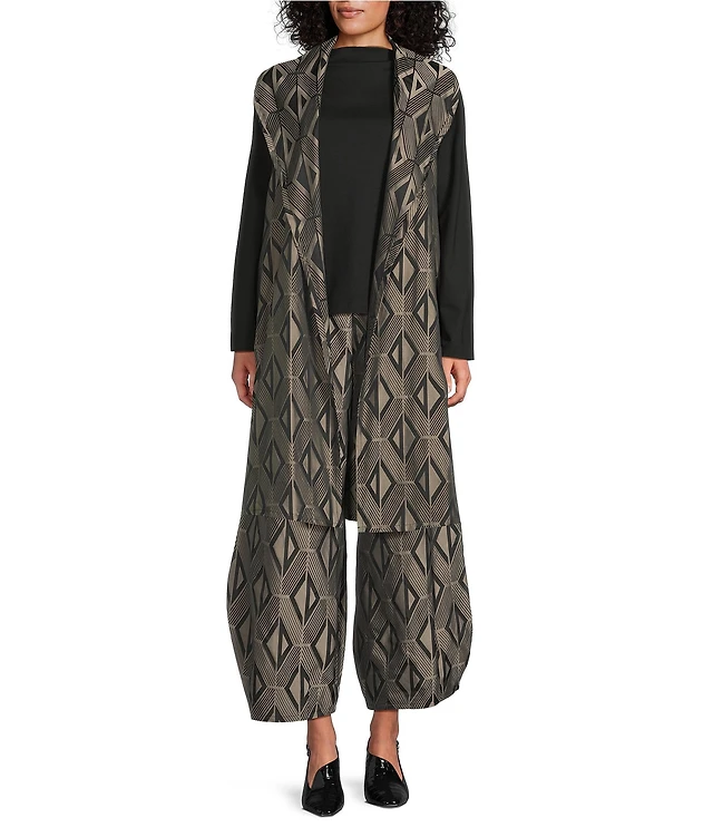 Bryn Walker Plus Size Marceline Memory Crunch Jacquard Shawl Collar Sleeveless Vest