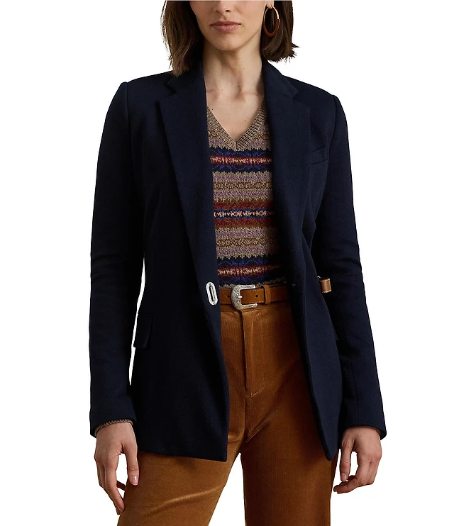 Lauren Ralph Lauren Stretch Knit Jacquard Buckle Trim Herringbone Blazer