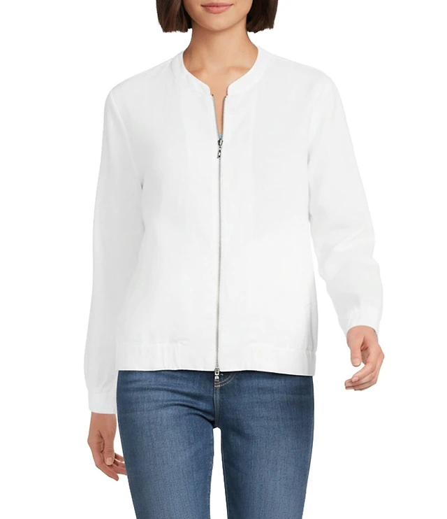 Charlie B. Linen Blend Point Collar Long Sleeve Fray Hem Button Front Jacket