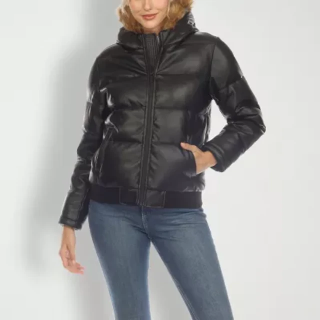 Frye and Co. Womens Faux Leather Hooded Midweight Coat