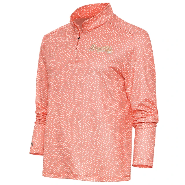 Women's Antigua Coral Atlanta Braves Tonal Wiki Quarter-Zip Pullover Top