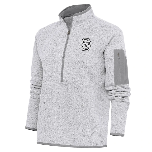 Women's Antigua Heather Gray San Diego Padres Brushed Metallic Fortune Half-Zip Pullover Jacket