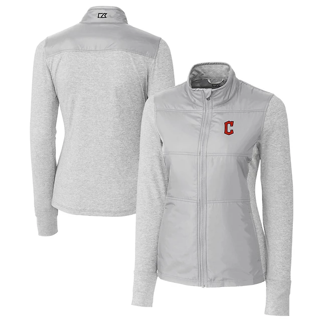 Women's Cutter & Buck Gray Pittsburgh Pirates DryTec Stealth Hybrid Quilted Full-Zip Windbreaker Jacket