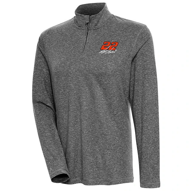 Women's Antigua Heather Black Joey Logano Confront Quarter-Zip Pullover Top