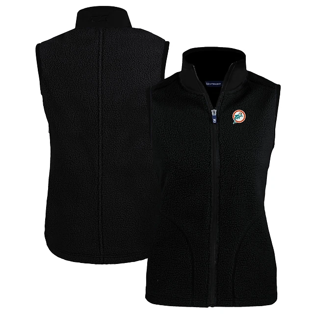 Women's Cutter & Buck Black Detroit Lions Helmet Logo Charter Eco Recycled Full-Zip Vest