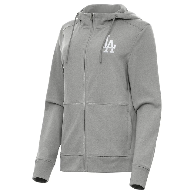 Women's Antigua Heather Gray Los Angeles Dodgers Seeker Full-Zip Hoodie Jacket