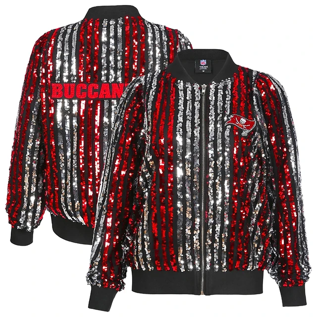 Women's Cuce Red Tampa Bay Buccaneers Slim Fit Sequin Striped Full-Zip Bomber Jacket