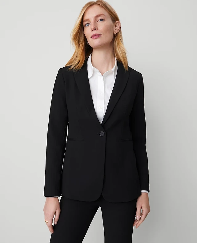 Ann Taylor The Petite Shorter One Button Blazer Fluid Crepe Black Women's