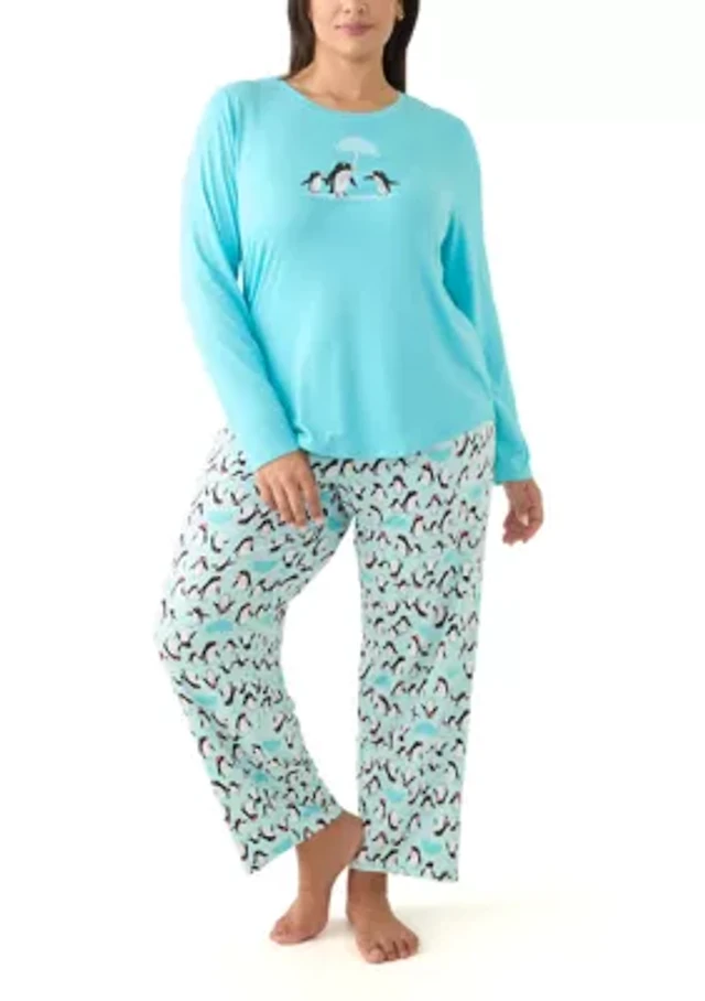 Plus Short Sleeve & Pants Tropical Pajama Set