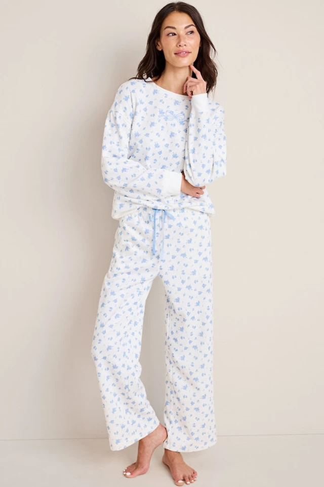 Sleep Chic Womens Crew Neck Long Sleeve 2-pc. Pajama Sets