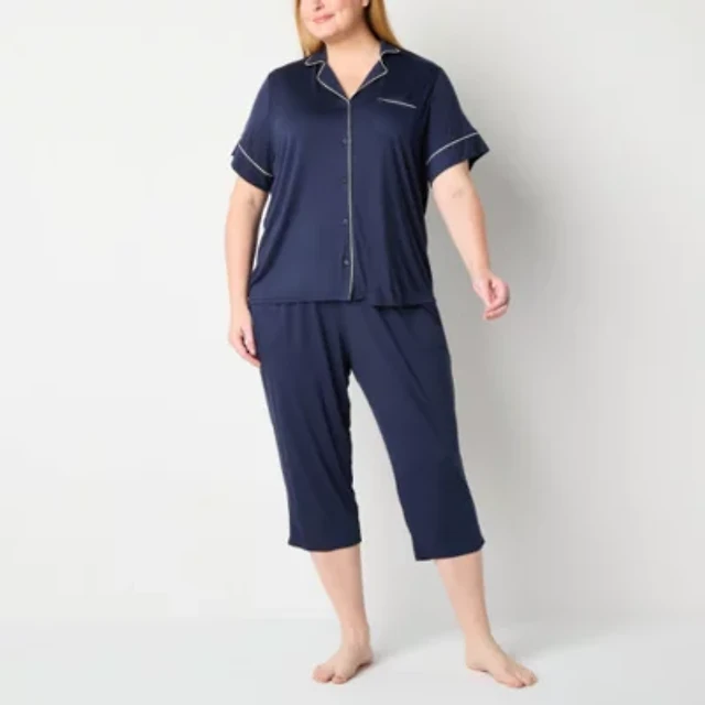 Liz Claiborne Womens Poplin Short Sleeve 2-pc. Plus Pajama Sets