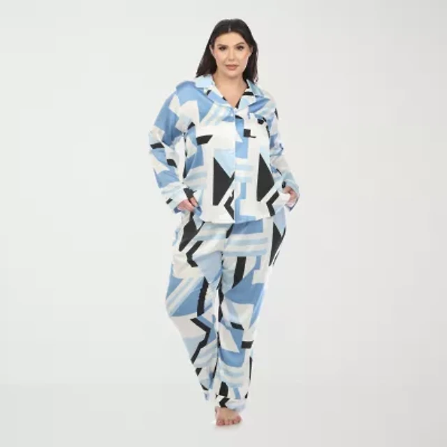 Liz Claiborne Womens Round Neck Long Sleeve 2-pc. Plus Pajama Sets