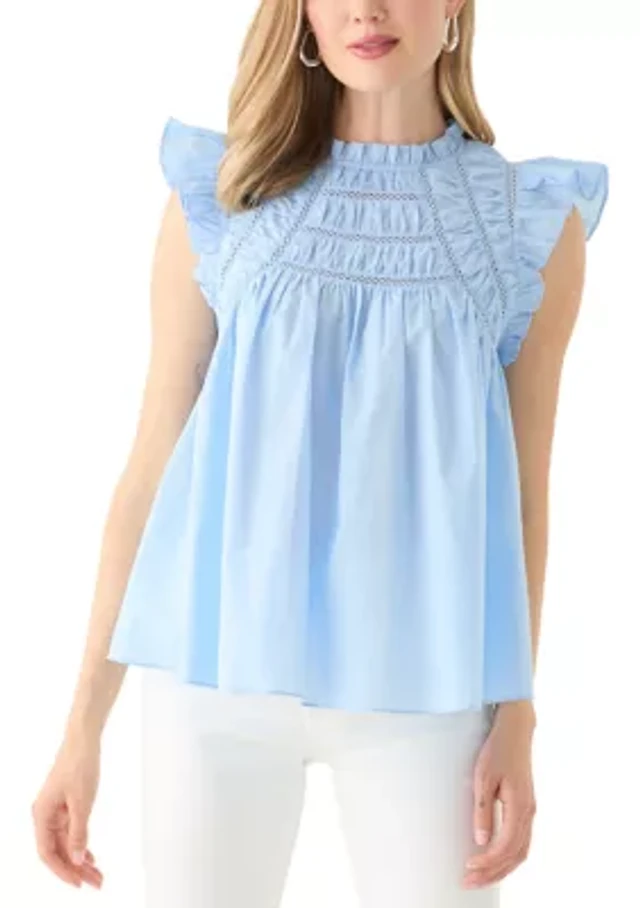 Women's Flutter Sleeve Button Front Ruffle Neck Blouse