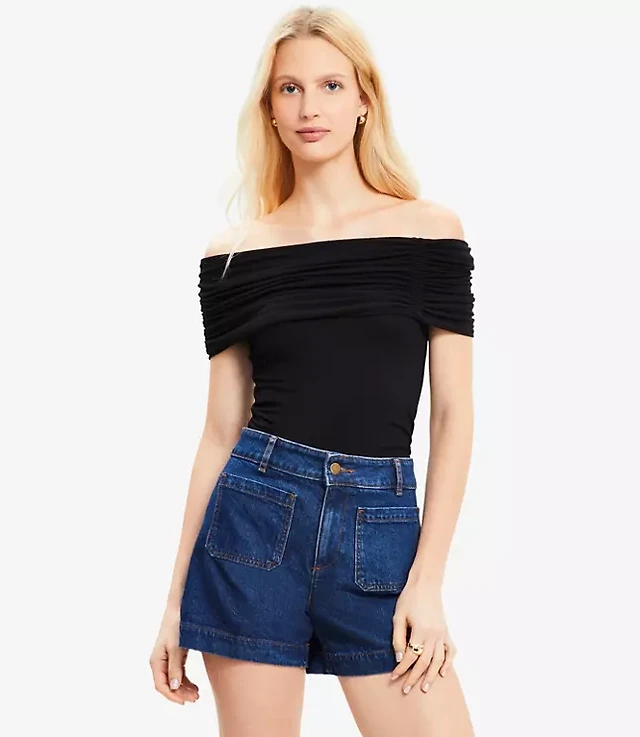 High Waisted Dark Wash Patch Pocket Mini Denim Skirt