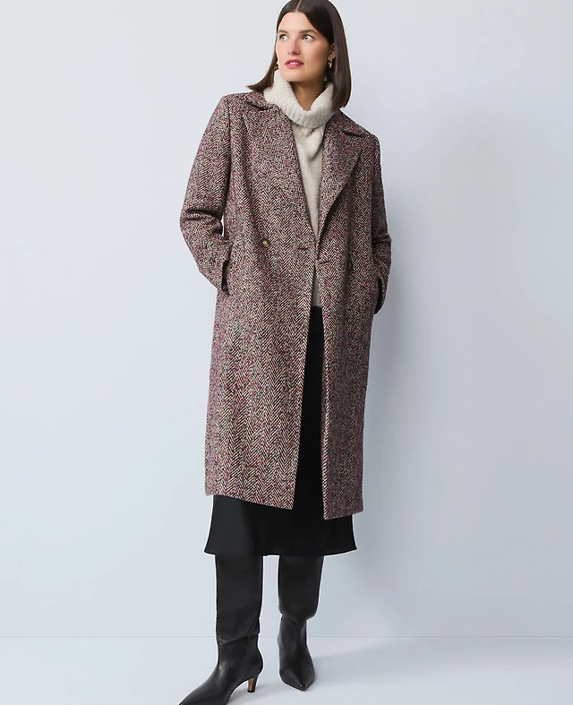 Ann Taylor The Petite Long Double Breasted Vest Tan Texture Women's