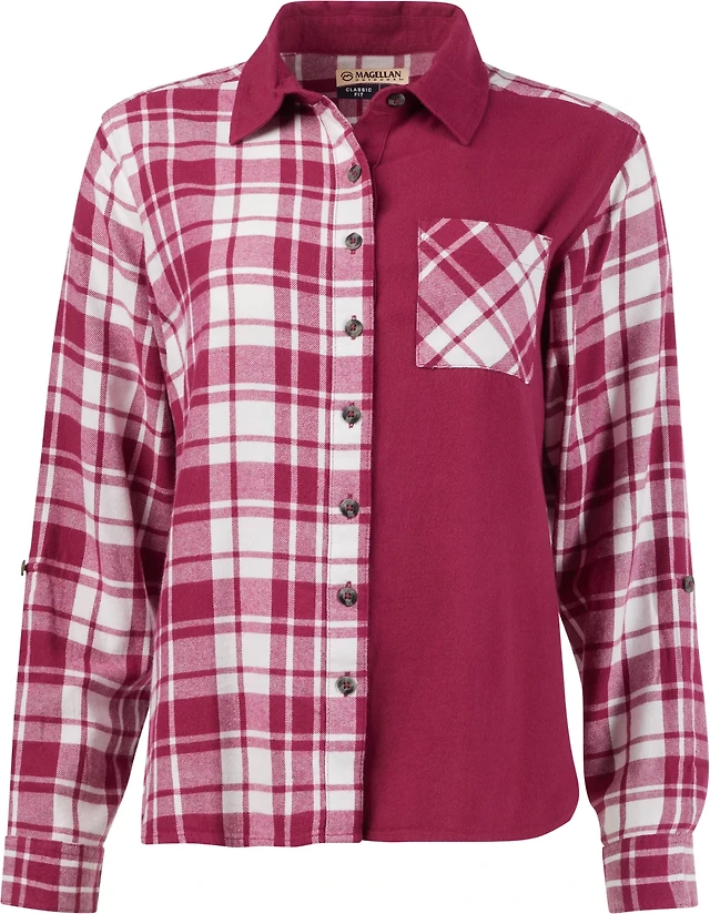 Magellan Outdoors Women's Willow Creek Mixed Media Plaid Long Sleeve Blouse