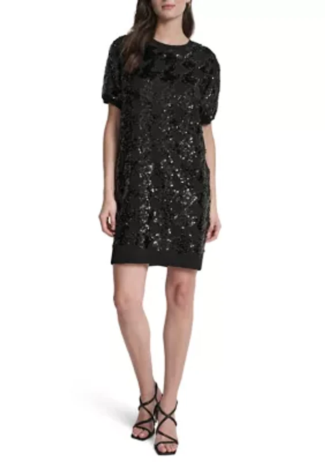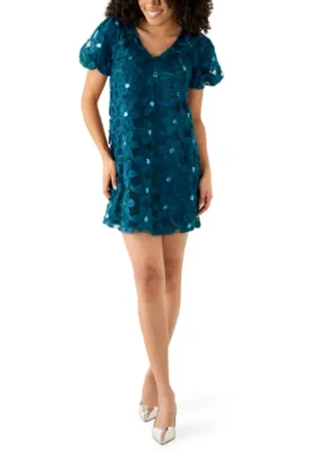 Women's Short Sleeve Floral Appliqué Mini Dress