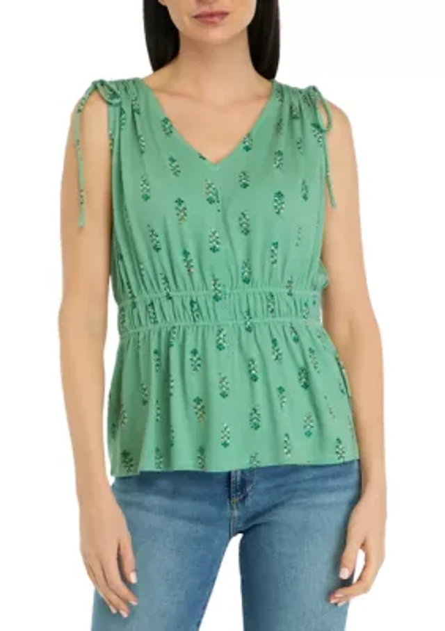 Women's Elbow Sleeve Button Trim Printed Tunic Top