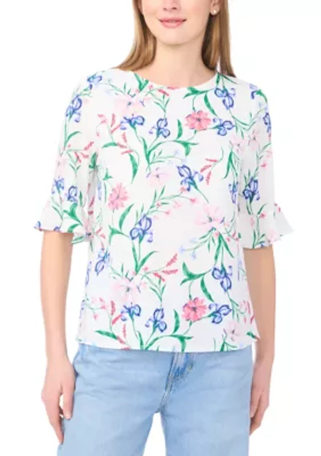 Lace Ruffle Mixed Media Top