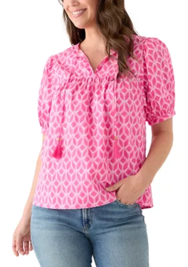 Women's 3/4 Sleeve Embellished Peasant Blouse