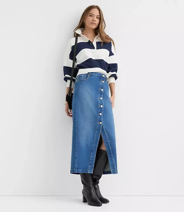 Refined Denim Midi Skirt Classic Mid Indigo