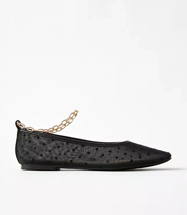 Velvet Dotted Mesh Ballet Flats