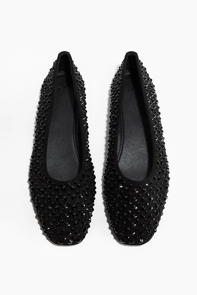 Rhinestone-Embellished Ballet Flats