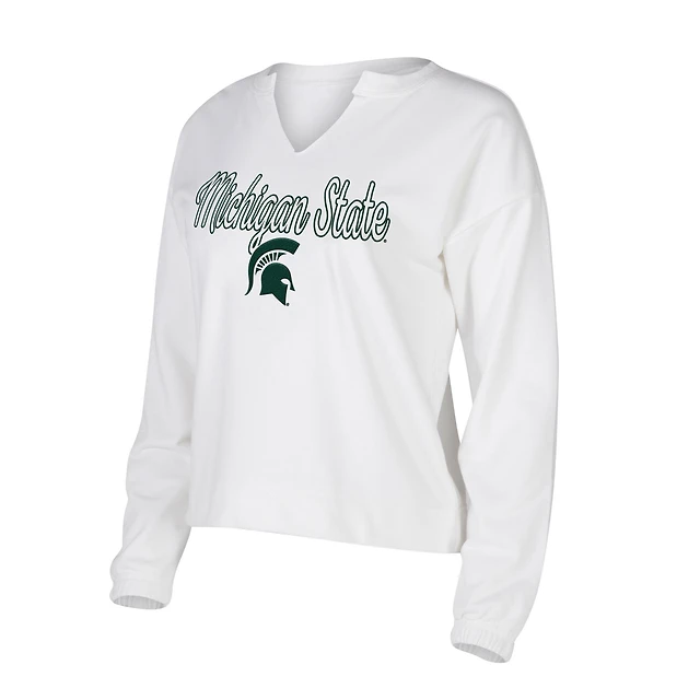 Women's Concepts Sport White Michigan State Spartans Sienna Notch Neck Long Sleeve Top