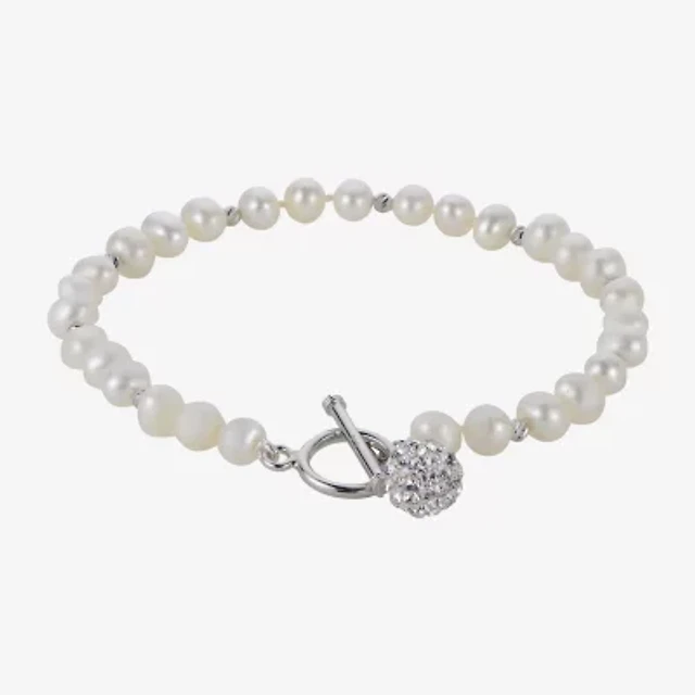 Worthington Silver Tone Simulated Pearl Womens Curb Chain Bracelet