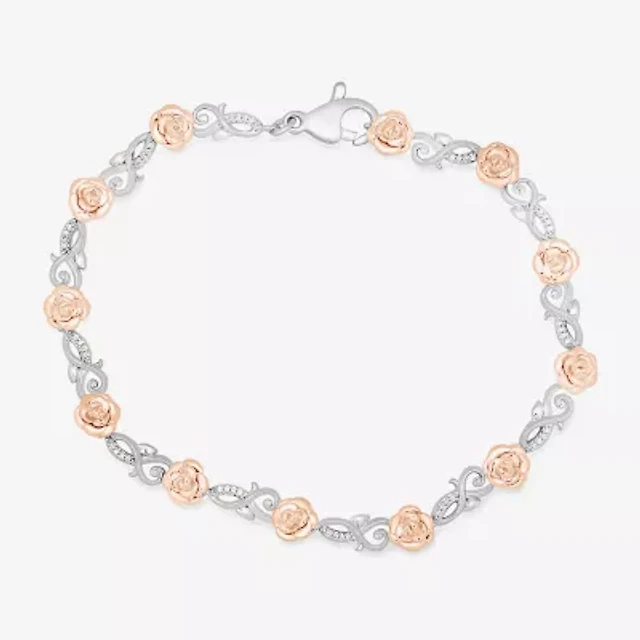 Enchanted Disney Fine Jewelry Womens 1/10 CT. T.W. Natural White Diamond 14K Rose Gold Over Silver Sterling Silver Beauty and the Beast Belle Princess Charm Bracelet