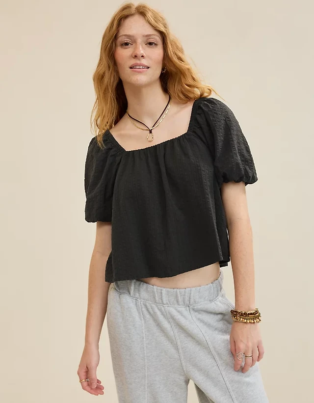 Aerie Seersucker Puff Sleeve Top