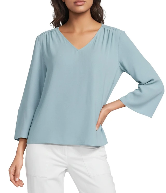 Lilly Pulitzer Elsa Lilly Guls Print Notch Collar V-Neck Bracelet Sleeve Blouse