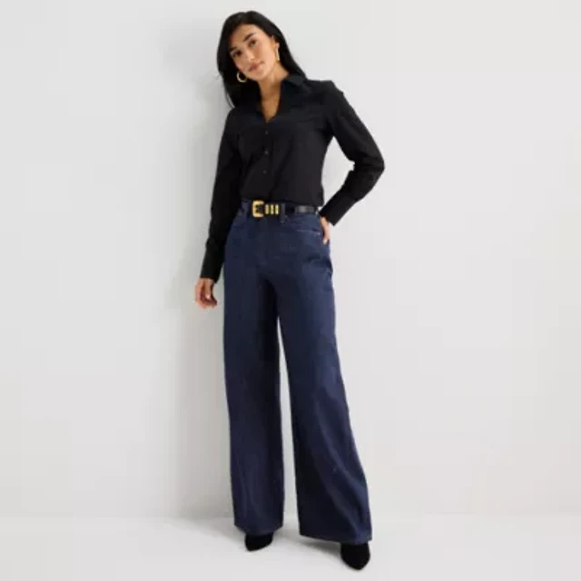 a.n.a Womens Tall High Rise Coated Wide Leg Jean