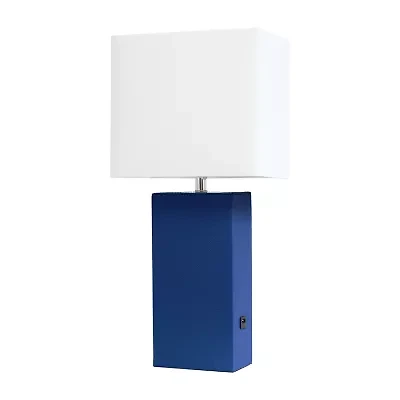 Elegant Designs Modern Leather Table Lamp with White Fabric Shade