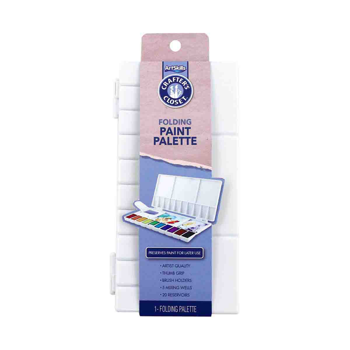 Crafter's Closet 4.75" x 9" Plastic Folding Artist Paint Palette with Easy Grip Opening and Paint Brush Holders