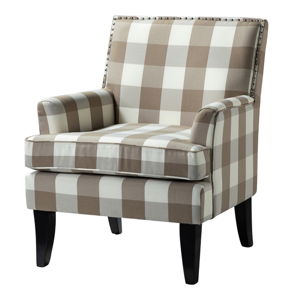 Beige Buffalo Check Upholstered Armchair
