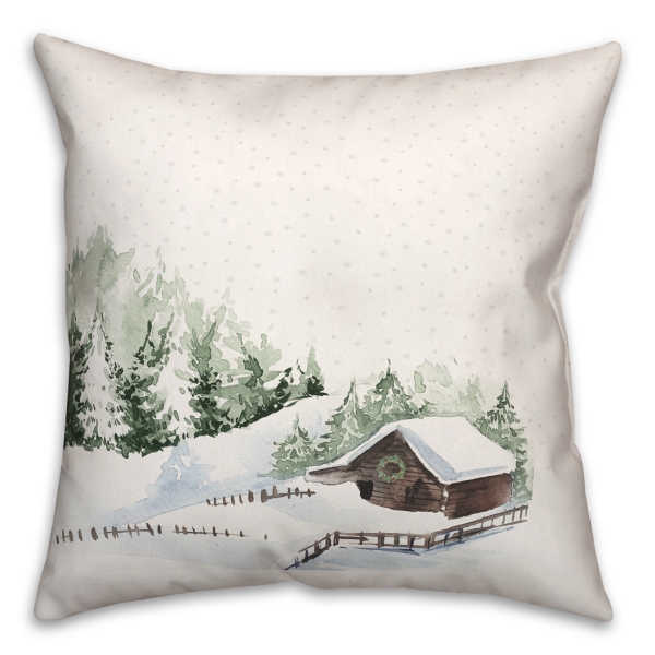 Arctic Nighttime Cabin 18x18 Throw Pillow