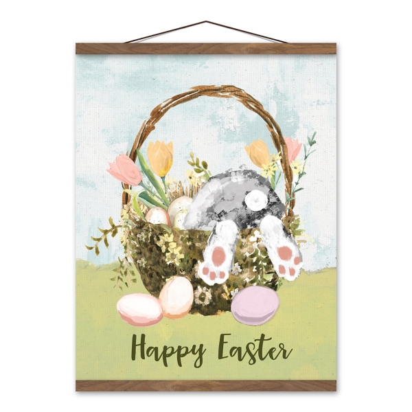 Easter Basket Bunny Teak Hanging Canvas Art Print