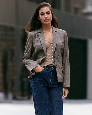 Editor Fitted Plaid Two Button Blazer