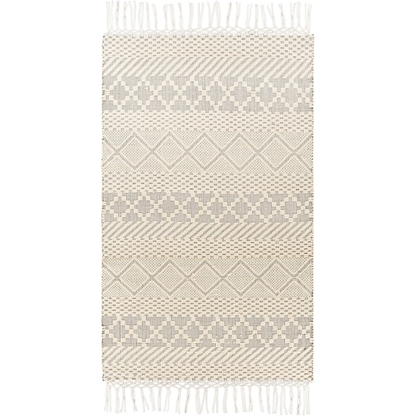Cream Diamond Tassel Wool Area Rug, 5x7