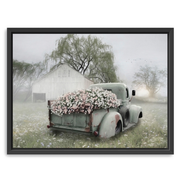 Sage Flower Truck Framed Canvas Print, 42x32 in.