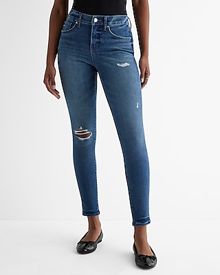 High-Rise Ripped Medium Wash Super Skinny Jeans