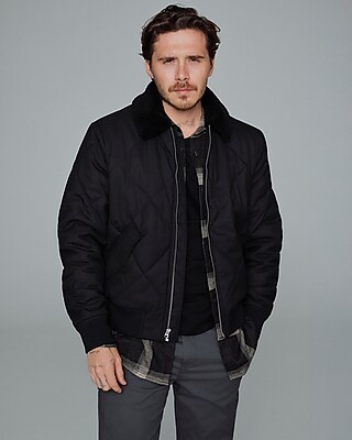 Bernardo Chevron Texture Rib-Knit Zip Front Bomber Jacket