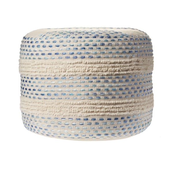 Blue and Cream Textured Stripe Pouf
