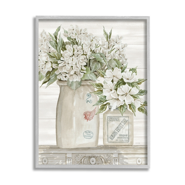 White Floral Ceramic Jar Framed Wood Wall Plaque