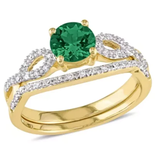 Round-Cut Emerald & Diamond Ring 3/8 ct tw 10K Yellow Gold