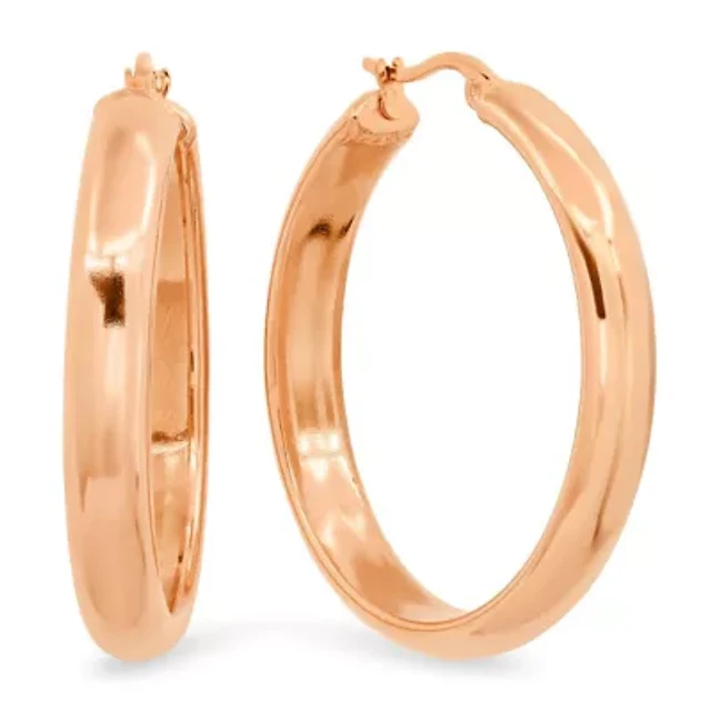 Ladies 18k rose gold plated stainless steel thick polish hoop earrings