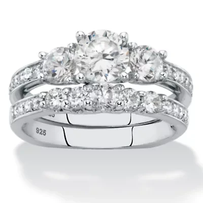 2.09 Cttw 2-Piece Round .925 Silver Cubic Zirconia Wedding Ring Set