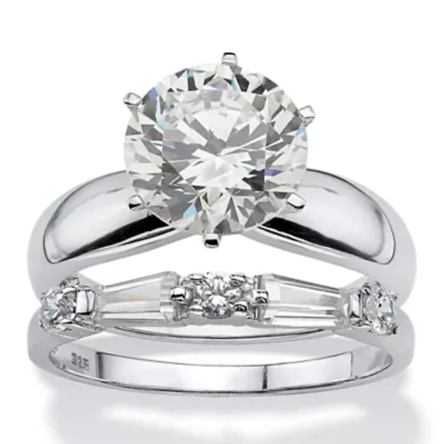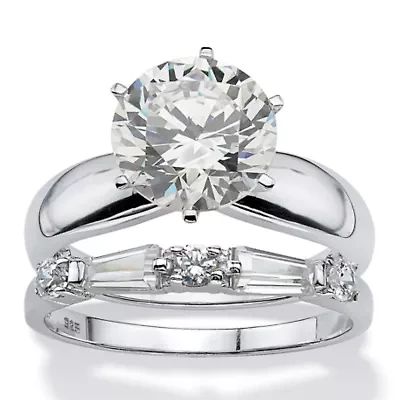 4.48 Cttw. 2-Piece Sterling Silver Round Cubic Zirconia Wedding Ring Set